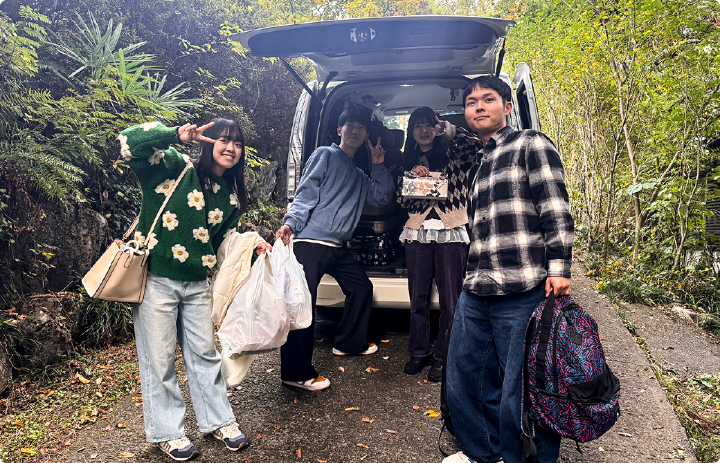 - 火のゆらめきを見ながらの仲間と飲むお酒は格別。